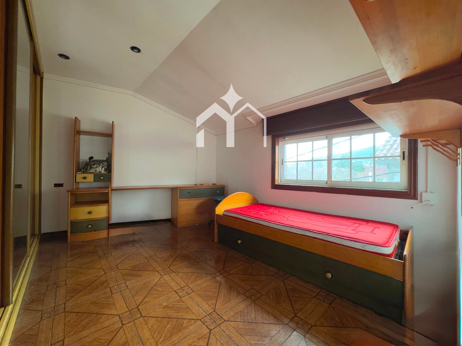 La primera planta ofrece dos dormitorios con armarios empotrados. El principal dispone de un espacio posterior tipo vestidor y salida a un pequeño balcón, aportando privacidad y funcionalidad. En esta misma planta destaca una galería amplia y luminosa, ideal como despacho, zona de lectura o espacio polivalente. Desde aquí se accede a una tercera habitación con posibilidad de incorporar armario vestidor.